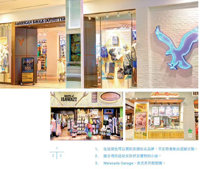 除了 AEON Rycom 之外,還有另外兩間有名的大型購物商城「T Galleria Okinawa by DFS」和「ASHIBINAA outlet mall」。DFS 是以精品為主的 outlet,Burberry、COACH、LV 等許多國際品牌都可以在這裡購買;ASHIBINAA 則是以國際品牌為主的 outlet,很多人會特地到這裡採買 LE CREUSET 鑄鐵鍋,價格大約是台灣價位五折,喜歡國際品牌的人,可以前往這兩間購物中心逛街購物。